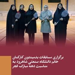به گزارش روابط عمومی دانشگاه صنعتی شاهرود، مسابقه بدمینتون کارکنان خانم این دانشگاه به مناسبت دهه مبارک فجر روز دوشنبه مورخ 23 بهمن ماه جاری در محل سالن حجاب خوابگاه هفتم تیر با حضور کارکنان خانم به صورت انفرادی و در جدول دوره ای برگزار گردید.
