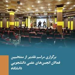 لازم به توضیح است؛ دفتر انجمنهای علمی دانشجویی هر ساله، فعالیتهای انجمنهای علمی دانشجویی سال تحصیلی گذشته را مورد ارزیابی قرار داده و با توجه به عمکلرد انجمنها و فعالیتهای صورت گرفته، منتخبینی را از بین ایشان انتخاب نموده و در سال تحصیلی جاری تقدیر مینماید. به همین منظور با توجه به پاندمی ایجاد شده و وجود ویروس کرونا، این مراسم چند سالی برگزار نگردید و توفیقی حاصل شد تا برای انجمنهای علمی دانشجویی در سه سال تحصیلی گذشته این مراسم برگزار شود.