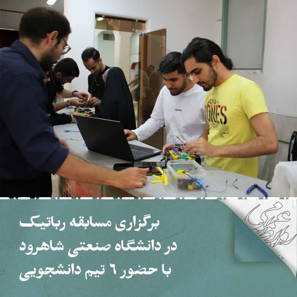 به گزارش روابط عمومی دانشگاه صنعتی شاهرود، به همت انجمن علمی دانشجویی دانشکده مهندسی مکانیک با همکاری اداره کارآفرینی این دانشگاه مسابقه رباتیک با حضور ۶ تیم دانشجویی با حضور دکتر مصطفی نظری و دکتر ناصرالدین سپهری اعضای هیات علمی این دانشکده بعنوان داور در روز شنبه 8 اردیبهشت ماه جاری در محل ورودی تالار شقایق ها این دانشگاه برگزار شد.