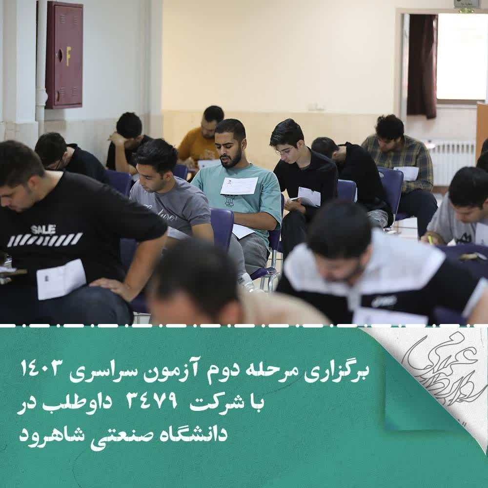 دکتر محمد عطائی معاون آموزشی و تحصيلات تکميلی دانشگاه صنعتی شاهرود و نماینده تام الاختیار این آزمون، گفت: در مرحله دوم آزمون سراسری کارشناسی امسال در مجموع سه هزار و 479 داوطلب به تفکیک دو هزارو 131 داوطلب دختر و هزارو 348 داوطلب پسر در مدت دو روز با 5 گروه آزمایشی در 4 حوزه امتحانی برای کسب صندلی دانشگاه ها با یکدیگر رقابت کردند.