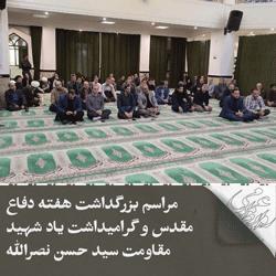 به گزارش روابط عمومی دانشگاه صنعتی شاهرود، مراسم بزرگداشت هفته دفاع مقدس و گرامیداشت یاد شهید سید حسن نصرالله،به همت پایگاه بسیج کارکنان، اساتید، دفتر نهاد نمایندگی ولی فقیه و روابط عمومی در این دانشگاه صبح روز یکشنبه 8 مهرماه در محل مسجد پیامبر اعظم (ص) واقع در پردیس مرکزی دانشگاه برگزار گردید.