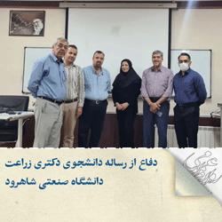 به گزارش روابط عمومی دانشگاه صنعتی شاهرود، متین عبدلی دانشجوی دکتری زراعت این دانشگاه در روز یکشنبه 25 شهریور ماه 1403 از رساله خود تحت عنوان " مطالعه تأثیر ملاتونین و براسینو استروئید بر عملکرد و برخی خصوصیات فیزیولوژیک و بیوشیمیایی نخود تحت تنش خشکی " به راهنمایی دکتر محمدرضا عامریان و مشاورهی دکتر امین ابراهیمی و دکتر مصطفی حیدری در محل ساختمان آموزشی دانشکده کشاورزی دفاع نمود.