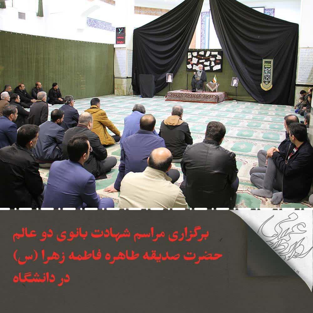 به گزارش روابط عمومی دانشگاه صنعتی شاهرود، همزمان با شهادت بانوی دو عالم حضرت صدیقه طاهره فاطمه زهرا (سلام الله علیها) به همت واحد فرهنگی پایگاه بسیج ظفر مراسمی از روز سه شنبه آذر ماه جاری13 به مدت 2 روز با سخنرانی حجت الاسلام و المسلمین دکتر حسین سوزنچی در مسجد پیامبر اعظم(ص) برگزار شد.