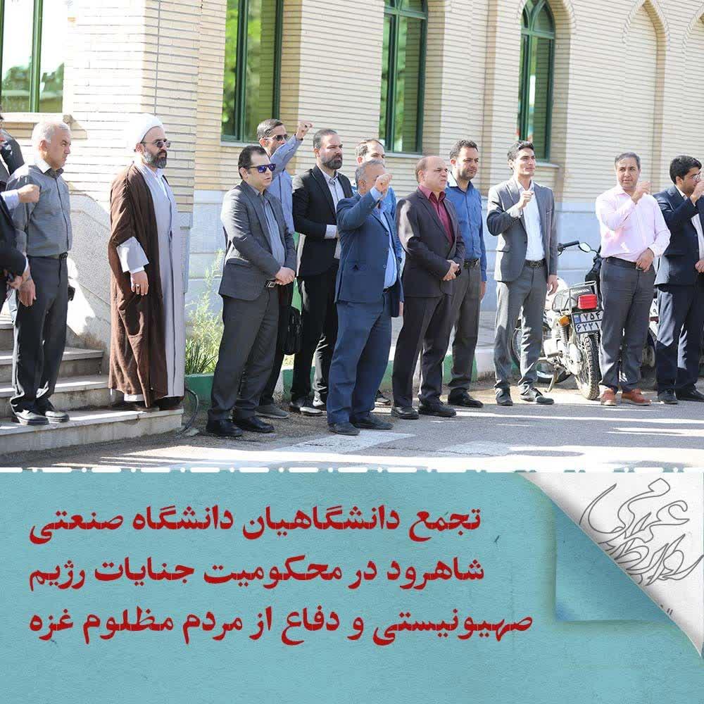 به گزارش روابط عمومی دانشگاه صنعتی شاهرود، صبح امروز سهشنبه ۲۶ فروردینماه ۱۴۰۴، مراسمی با حضور دانشگاهیان و با سخنرانی حجتالاسلام و المسلمین حسینی، معاون دفتر نهاد نمایندگی مقام معظم رهبری، در مسجد پیامبر اعظم (ص) پردیس مرکزی برگزار شد. در ادامه این مراسم، تجمعی اعتراضی در محوطه مقابل مسجد برگزار شد و حاضران با سر دادن شعارهایی حمایت خود را از مردم مظلوم غزه و محکومیت جنایات رژیم غاصب صهیونیستی اعلام کردند.