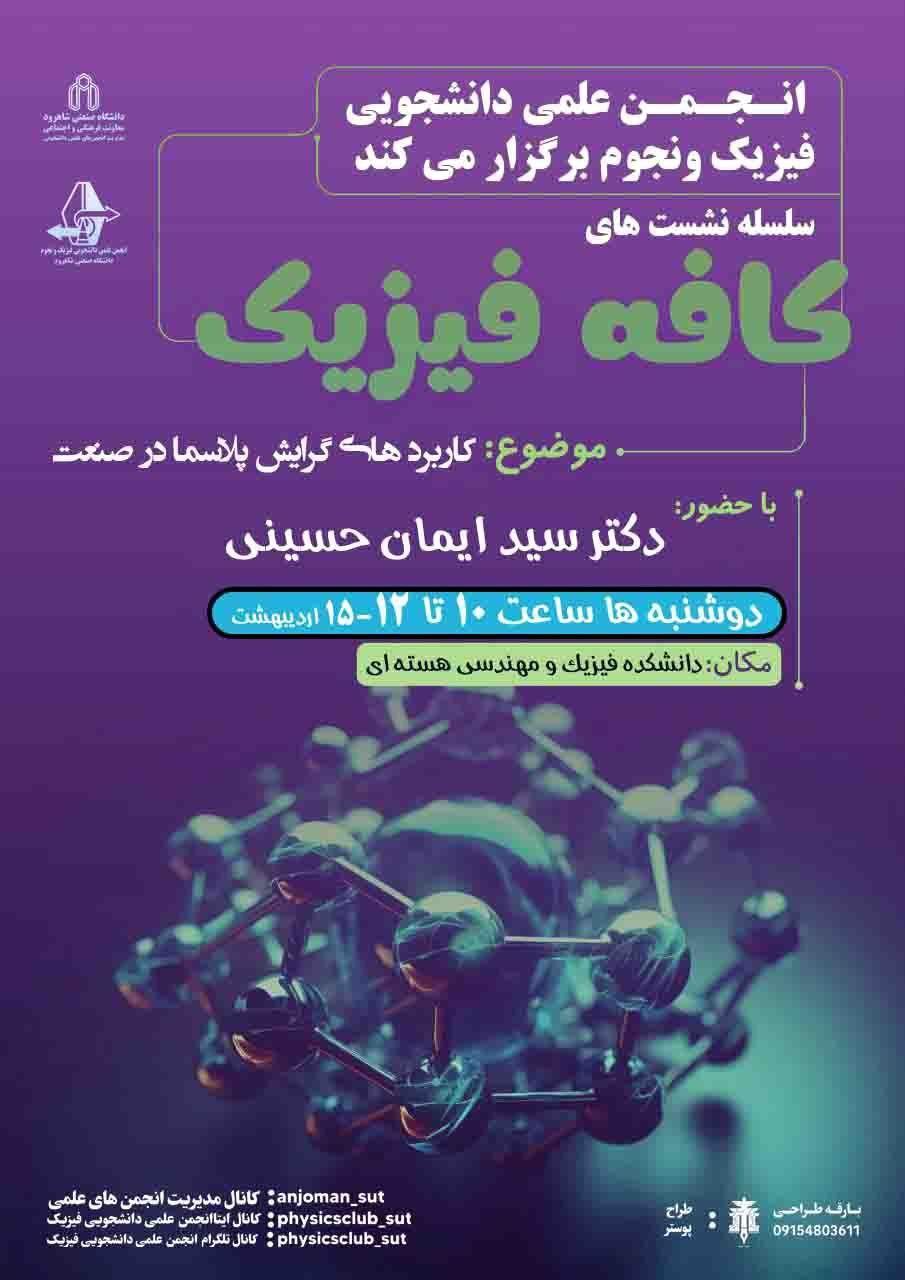 سلسله نشست هاي کافه فیزیک با حضور آقای دکتر سید ایمان حسینی با موضوع کاربردهای پلاسما در صنعت
