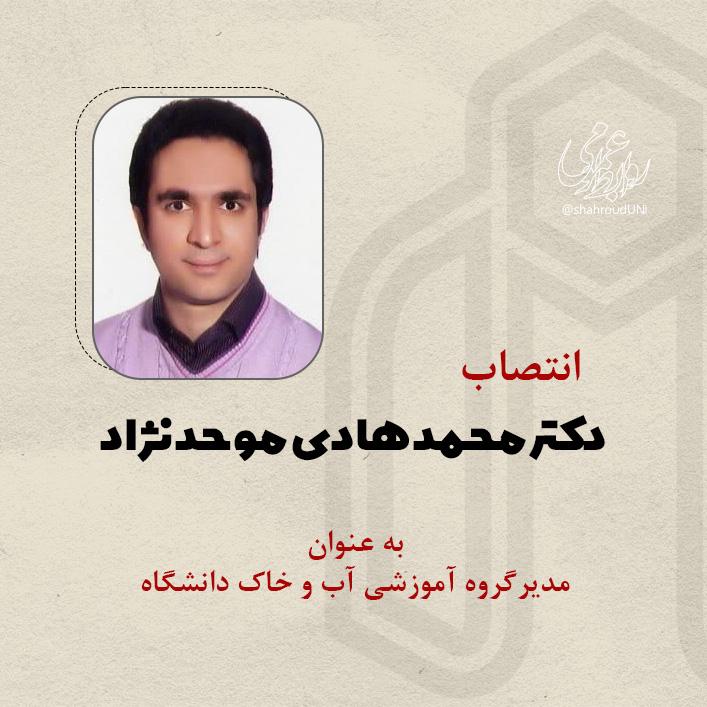 به گزارش روابط عمومی دانشگاه، طی حکمی از سوی دکتر مرتضی ایزدی فرد رئیس دانشگاه صنعتی شاهرود ضمن تقدیر از دکتر یاسر صفری در کسوت مدیر گروه آموزشی آب و خاک ؛ دکتر محمد هادی موحد نژاد استادیار دانشکده مهندسی کشاورزی را به عنوان مدیر گروه آموزشی آب و خاک منصوب گردید.