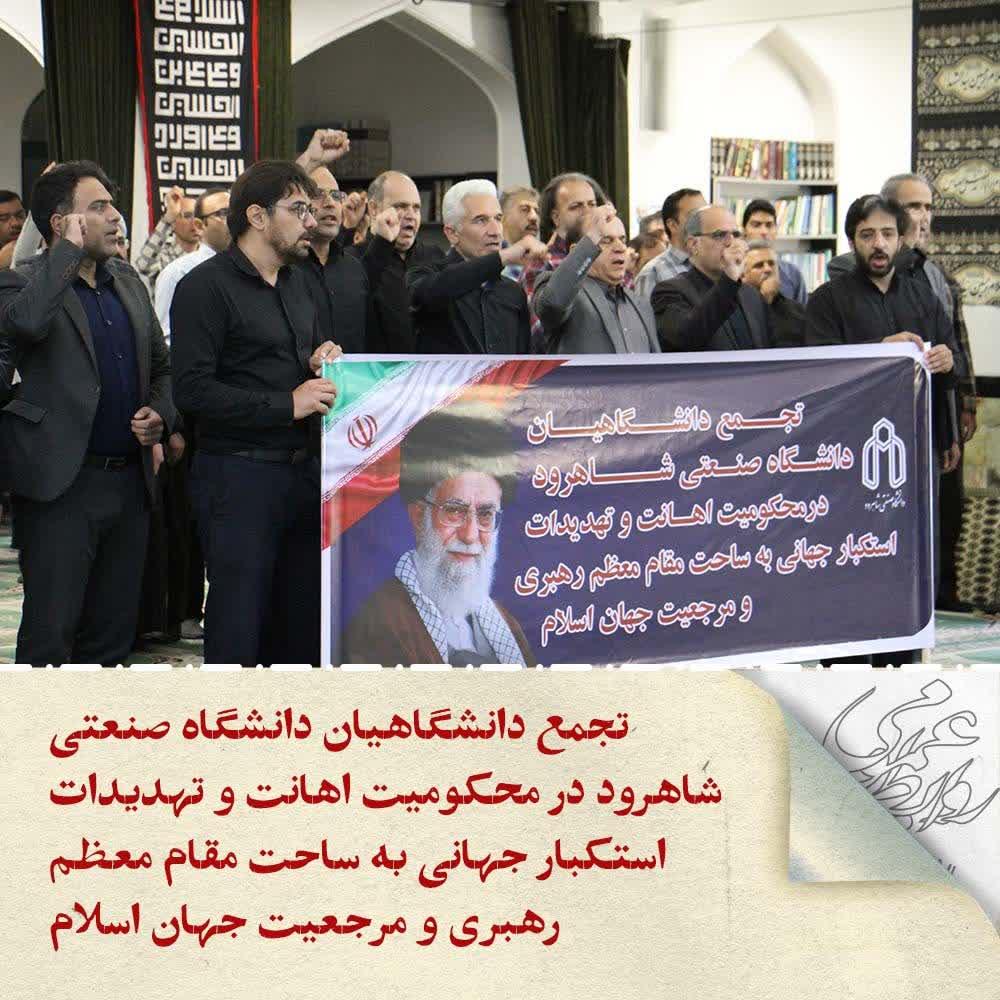به گزارش روابط عمومی دانشگاه صنعتی شاهرود، در پی هتاکی و تهدیدات اخیر استکبار جهانی نسبت به مقام معظم رهبری (مدظلهالعالی)، دانشگاهیان دانشگاه صبح روز چهارشنبه 11 تیرماه 1404 با حضور پرشور اساتید، کارکنان و دانشجویان در مسجد پیامبر اعظم (ص)، ضمن قرائت زیارت عاشورا، با برگزاری تجمعی باشکوه حمایت قاطع خود از ولایت فقیه و مرجعیت جهان اسلام را اعلام کردند و با آرمانهای انقلاب اسلامی تجدید میثاق نمودند.