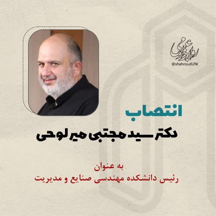 با عنایت به بند «10- هـ » ماده «4» آیین نامه جامع مدیریت دانشگاه ها و موسسات آموزش عالی، پژوهشی و فناوری مصوب جلسه 684 شورای عالی انقلاب فرهنگی و مراتب تعهد، تخصص و تجربیات ارزنده جنابعالی، به موجب این ابلاغ با حفظ پست سازمانی به مدت سه سال به عنوان رئیس دانشکده مهندسی صنایع و مدیریت منصوب می شوید تا وظایف و امور محوله را بر اساس آیین نامه جامع مدیریت دانشگاه ها و با هماهنگی معاونین و مدیران محترم ستادی به انجام رسانید.