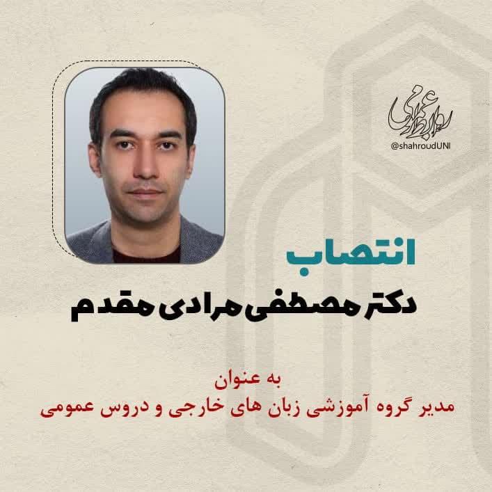 به گزارش روابط عمومی دانشگاه، طی حکمی از سوی دکتر مرتضی ایزدی فرد رئیس دانشگاه صنعتی شاهرود ضمن تقدیر از دکتر ابوطالب ایرانمهر در کسوت مدیر گروه آموزشی زبان های خارجی و دروس عمومی به مدت دو سال ؛ دکتر مصطفی مرادی مقدم استادیار گروه آموزشی زبان های خارجی و دروس عمومی به عنوان مدیر گروه آموزشی زبان های خارجی و دروس عمومی منصوب گردید.
