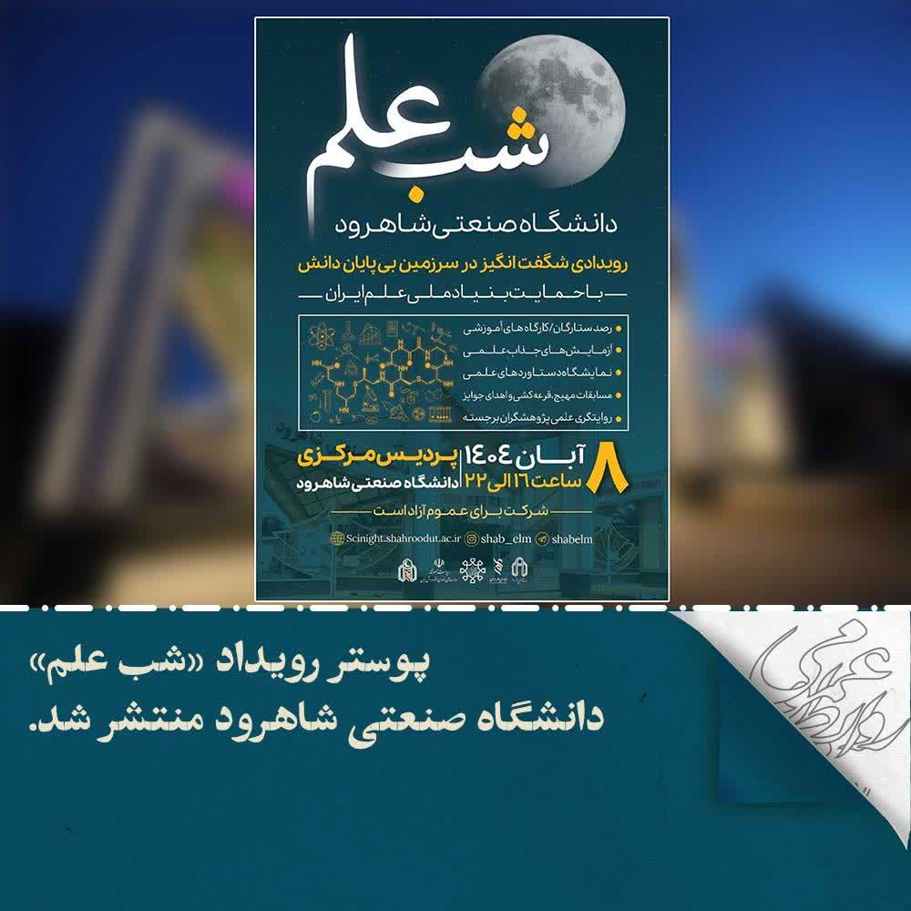 به گزارش روابط عمومی دانشگاه صنعتی شاهرود، پوستر رویداد «شب علم» که با حمایت بنیاد ملی علم ایران و معاونت علمی و فناوری ریاست جمهوری برگزار میشود، منتشر شد.