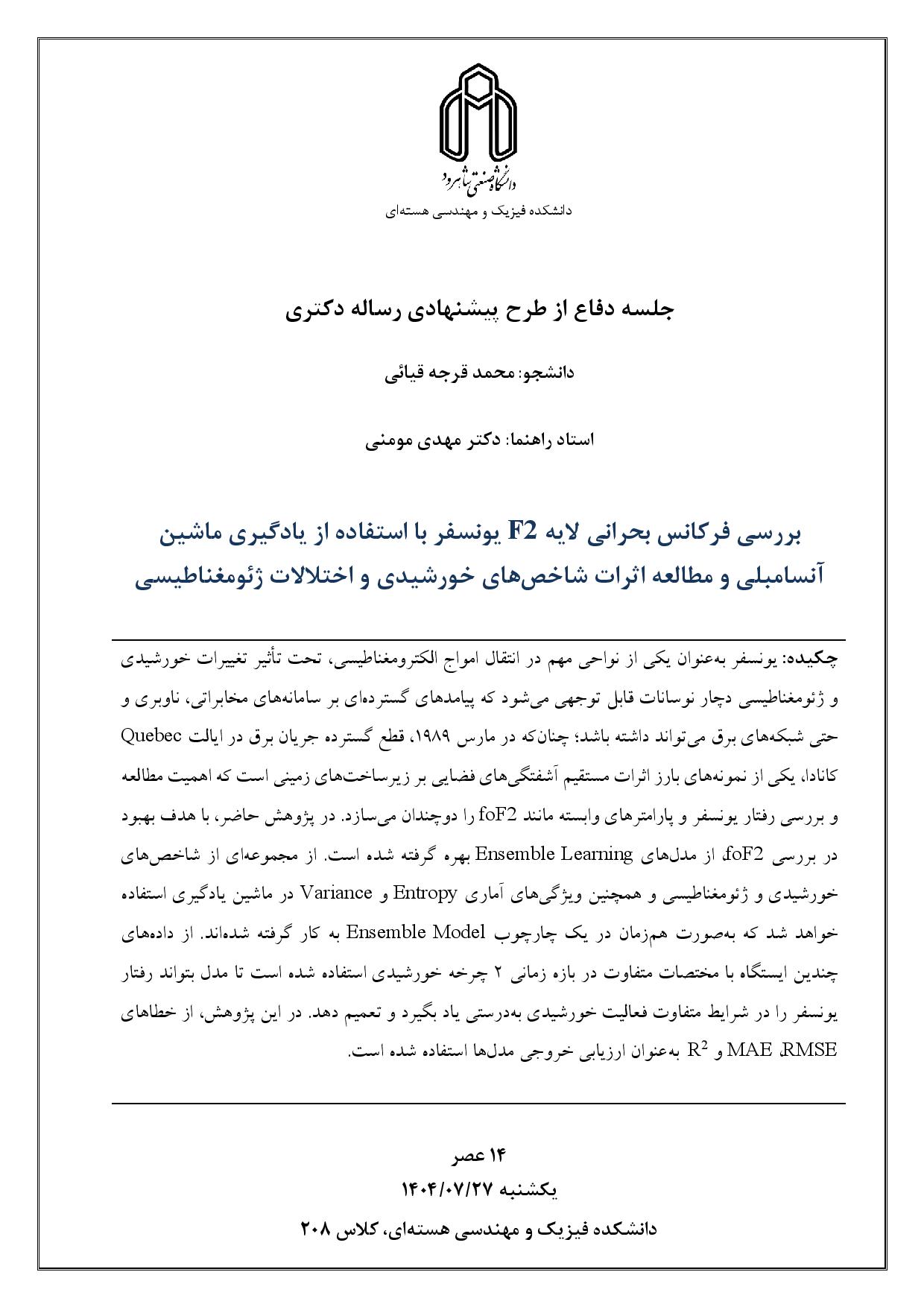 اخبار و رویدادها: جلسه دفاع از طرح پيشنهادي رساله دکتری آقاي محمد قرجه (دانشجوی دکتری گرايش پلاسما )