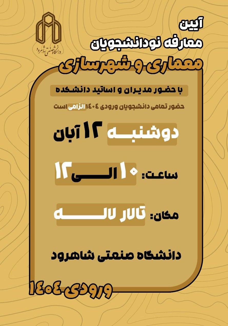 جلسه معارفه دانشجویان ورودی 1404دانشکده مهندسی معماری و شهرسازی در روز دوشنبه 12 آبان باحضور ریاست و اساتید محترم، همچنین حضور تمامی دانشجویان ورودی برگزار گردید، در این آیین ضمن خیر مقدم توسط ریاست محترم دانشکده، به معرفی کارکنان و اساتید محترم، معرفی دانشکده و توضیحاتی در خصوص مسائل آموزشی پرداخته شد.