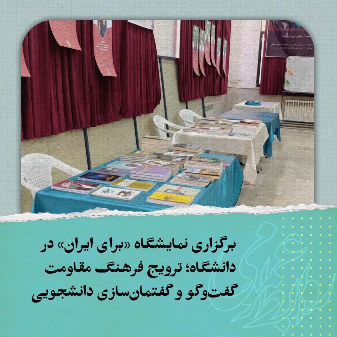 به گزارش روابط عمومی دانشگاه صنعتی شاهرود، نمایشگاه «برای ایران» که از تاریخ ۱۱ آبان به مدت سه روز در محل ورودی تالار شقایقهای دانشگاه برگزار شد، با حضور گسترده دانشجویان و استادان به کار خود پایان داد. این برنامه با هدف تبیین مفاهیم مقاومت، گسترش فضای تعامل و گفتوگوی آزاد و همچنین آشنایی دانشجویان با ظرفیتهای فرهنگی و هویتی کشور برگزار گردید.