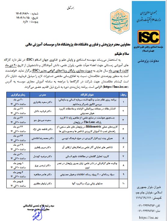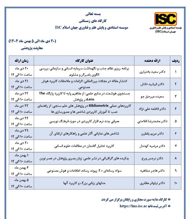 برگزاری کارگاه های آموزشی موسسه استنادی و پایش علم و فناوری جهان اسلام (ISC)