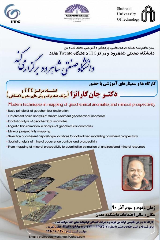 در راستای همکاری دانشگاه های صنعتی شاهرود و مرکز ITC دانشگاه Twente کشور هلند، کارگاه آموزشی روش های مدرن اکتشافی در محیط GIS در دانشگاه صنعتی شاهرود برگزار می شود.