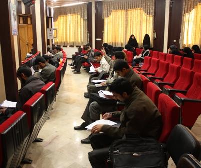 در این آزمون که با حضور 40 دانشجو در تالار اقاقیای اداره کل امور فرهنگی برگزار شد شرکت کنندگان به پاسخگویی سوالات کتاب های دقایقی با قرآن تألیف محسن قرائتی، زندگانی چهارده معصوم تألیف آیت الله مظاهری و کتب قرآن شناسی و رایحه هدایت تألیف مصطفی عباسی مقدم پرداختند.