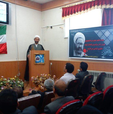 سپس حجت الاسلام و المسلمین شاهینی استاد حوزه ضمن نکوداشت یاد و خاطره شهدای هسته ای، با اشاره به احادیث و روایاتی از ائمه اطهار (ع) گفت: انسان یا باید عالم ربانی باشد و یا متعلمی خیرخواه باشد. وی با توجه به وجود رشته حسابداری در دانشکده، اهمیت اعداد در زندگی را متذکر شد و کاربرد آن را در زمینه هایی چون تقسیم ارث و مفاهیم عددی در قرآن یادآور شد.