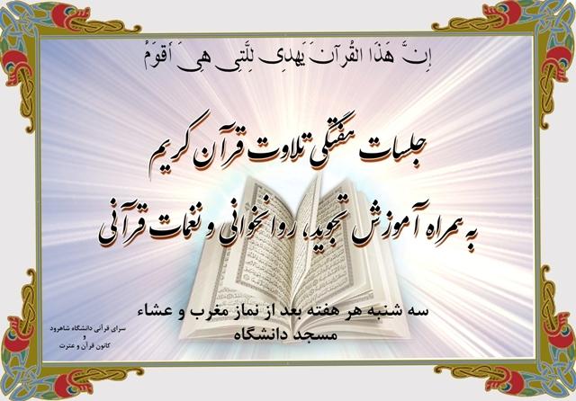 اولین فعالیت سرای قرآنی که با همکاری کانون قرآن و عترت مدیریت امور فرهنگی دانشگاه برگزار می گردد، برپایی جلسات هفتگی تلاوت قرآن کریم به همراه آموزش روانخوانی، تجوید و نغمات قرآنی است که سه شنبه هر هفته بعد از نماز مغرب و عشاء در مسجد پیامبر اعظم (ص) دانشگاه برگزار می گردد.