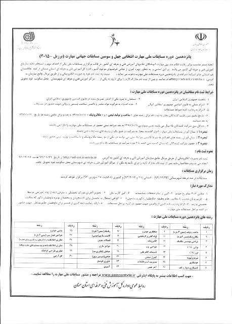 پانزدهمین مسابقه ملی مهارت، انتخابی مسابقات جهانی مهارت برزیل