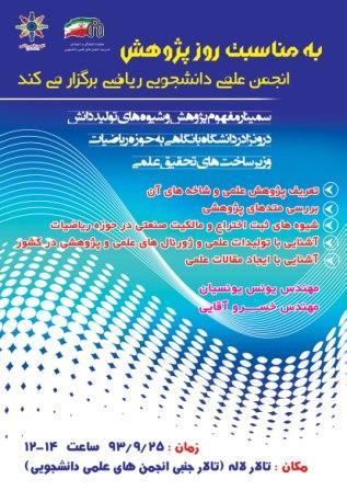 انجمن علمی دانشجویی ریاضی دانشگاه و به مناسبت هفته پژوهش، سمینار مفهوم پژوهش