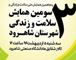 به گزارش روابط عمومی دانشگاه صنعتی شاهرود، پنجاهمين همايش سلامت و زندگی و سومين همايش سلامت و زندگی شهرستان شاهرود، روز سه شنبه 5 ارديبهشت ماه جاری ساعت 16 در محل تالار شقايق های دانشگاه صنعتی شاهرود برگزار خواهد شد.