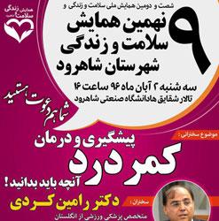 این همایش با حضور دكتر رامین كردی متخصص پزشكی ورزشی از انگلستان، عضو هیات علمی دانشگاه علوم پزشكی تهران و فلوشیپ اینترونشنال از دانشگاه استنفورد آمریكا با استقبال پرشوری از سوی همشهریان روبه رو گردید. این همایش كه به دبیری دانشكده تربیت بدنی دانشگاه صنعتی شاهرود و همكاری جمعی از فعالان شهر در طی نه ماه گذشته سه شنبه اول هر ماه برگزار گردیده است، خوشبختانه تا به الان توانسته در خصوص پیشگیری و درمان حوزه های مختلف موفق ظاهر شود.